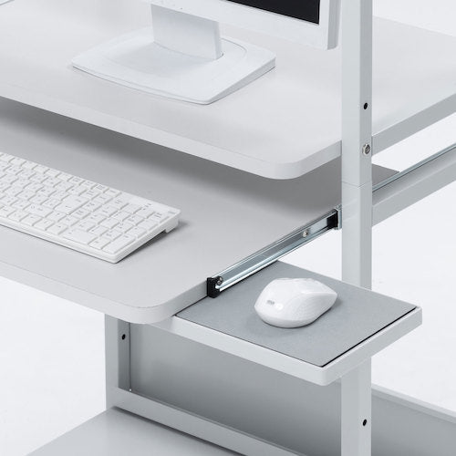 카탈로그 품번:RAC-EC15N2 특징:●목제 천판은 환경 친화적인 재생재를 사용하고 있어, 스틸제보다 상냥한 감촉입니다. ●슬라이드식 키보드 선반과 마우스 테이블 첨부입니다. ● 뒷면의 후면 패널이 흔들림을 최소화합니다. ● 케이블 접수입니다. ● 전원 탭 등을 설치할 수 있습니다. ●아래 선반은 스틸제 선반으로 되어 있어 자석 부착 기기를 고정, 설치할 수 있습니다. 용도: ●스탠다드 타입의 사양입니다. 사양:●간구(mm):600●안길이(mm):600●높이(mm):1265●색:라이트 그레이 ●내하중(kg):90●출하 형태:넉다운 조립식 개구수:1개 입 선반/스틸(에폭시 수지 분체 도장) ●마우스 테이블/ABS 수지(마우스 조작부는 천 붙여) ●캐스터/PP 세트 내용/부속품: ●슬라이드식 마우스 테이블 ●캐스터(스토퍼 부착×2개, 스토퍼 없음×2개) 주의:●캐스터는 장거리의 이동을 상정한 것이 아닙니다. ● 기기를 올린 채로 이동하지 마십시오.
