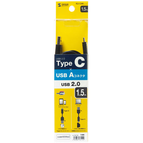 SANWA USB2.0TypeC-A 케이블 KU-CA15K 1개