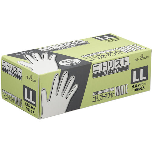 SHOWA 니트릴 고무 일회용 장갑 No884 니트리스트·화이트 100장입 LL사이즈 NO884-LL 1 상자