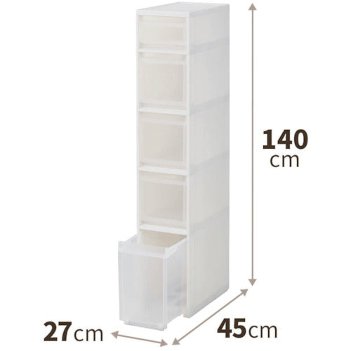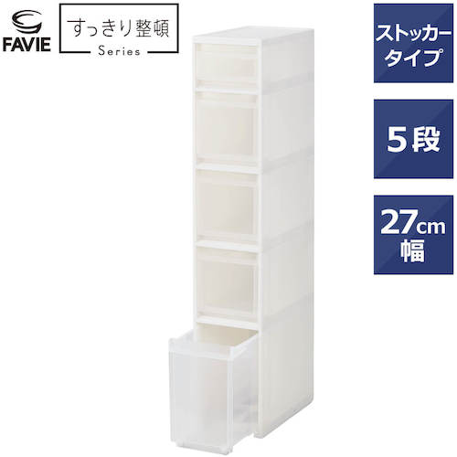카탈로그 품번:811000971 특징: ● 같은 폭의 스키피타 왜건과 연결 가능합니다. (5 단 타입은 불가) ● 서랍은 조작하기 쉽도록 위 / 아래에 설치입니다. ●스토커 서랍 안쪽 또는 전면 외측에 세트 가능한 소품 포켓(1개) 첨부입니다. ● 세련된 화이트 컬러로 주방과 화장실 등 모든 장면에서 스톡 수납에 추천합니다. ●폭 27 cm의 와이드 타입입니다. 仕様:●色:ホワイト●外形寸法(mm)間口:270●外形寸法(mm)奥行:450●外形寸法(mm)高さ:1400●耐荷重(kg):46●段数(段):5●引き出しサイズ:ワイドS、L各1個、M×3個●耐荷重(kg/段):5(S)、7(M)、17(L)●天板耐荷重(kg):3●有効内寸高さ(mm):125、230、345●有効内寸奥行(mm):400●有効内寸間口(mm):205〜225、195〜215●完成品●下段ボトルストッカー(引出しワイドLサイズ)に後部キャスター、引出しローラー付●引き出し内寸(間口×奥行×高さ):205〜225×400×125mm(Sサイズ)、2 05~225×400×230mm(M사이즈), 195~215×400×345mm(L사이즈) 【서랍 M 사이즈】 500ml 페트병 · 세탁제 병 · 레토르트 상자 · DVD 소프트 등, 【 서랍 L 사이즈 】 2 리터 페트병 · 주방 종이 · 시리얼 상자 등 ● 내 하중 : 【 서랍 와이드 S 사이즈 】 5kg, 【 서랍 와이드 M 사이즈 】 7kg, 【 서랍 와이드 L 사이즈 】 17kg 재질/마무리: ●폴리프로필렌(PP) 세트 내용/부속품: ●내측・외측에 세트 가능한 소품 포켓(1개) ●하단 보틀 스토커(서랍 와이드 L사이즈)에 후방 캐스터, 서랍 롤러 부착 주의:●스토커 5단 타입은 왜건과의 연결은 불가능합니다.