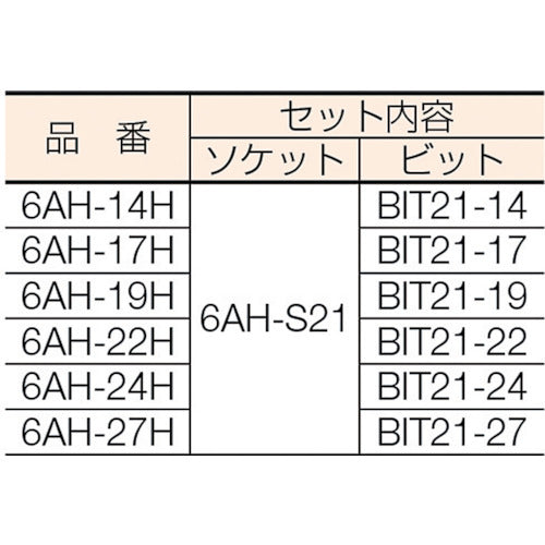 TONE 임팩트용 헥사곤 소켓(교환식) 삽입각 19.0mm 대변 치수 24mm 6AH-24H 1 S