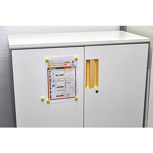 카탈로그 품번:TFP30-5-Y 특징:●내환경성이 뛰어납니다. ● 물에 강합니다. ● 페라이트 자석을 폴리아미드로 코팅하고 있습니다. 용도 : ● 화이트 보드, 관리 보드 등. 사양:●표면자속밀도(T):0.1●흡착력(N):9●외경(mm):31●두께(mm):7.5●색:황 재질/마무리:●마그넷:페라이트 자석
