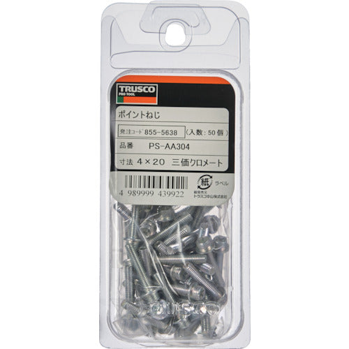 TRUSCO 포인트 나사 4×20 3가 크로메이트 50개입 PS-AA304 1 PK