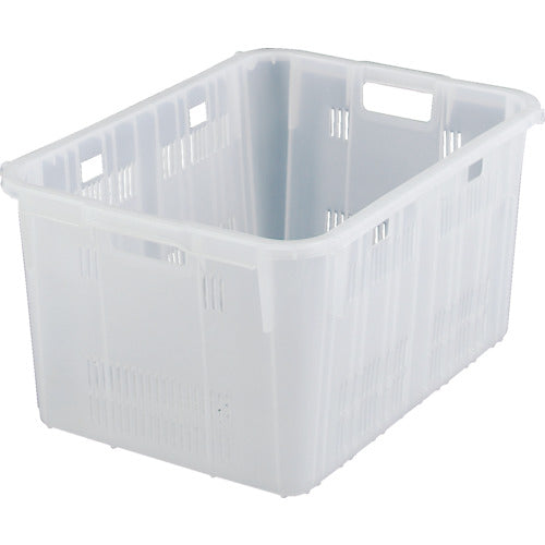 카탈로그 품번:TMK-54TM 특징:●환기・통수성이 좋은 바구니 타입입니다. ●빈 상자시는 네스팅식으로 거듭해 공간 절약으로 수납할 수 있습니다. ● 반투명 타입이므로 내용물을 확인할 수 있습니다. 사양:●용량(L):54 ●색:반투명
