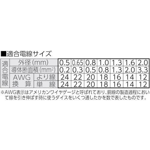 카탈로그 품번:TWS-1 특징:●부드러운 그립과 스프링 구조를 채용하는 것으로, 연속 작업에서도 피곤하지 않습니다. ●칼날은, 다이아몬드 정밀 숫돌 연마에 의해, 고정밀도의 분리를 실현했습니다. 사양:●전장(mm):165●적합 전선(mm):0.5~2.0●적합 전선:0.5~2.0mm 단선●색:적색 재질/마무리:●본체:스틸 ●그립:수지