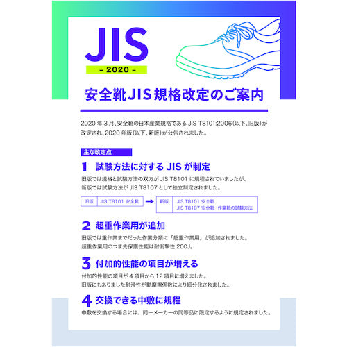카탈로그 품번:TMSS-250 특징:●인간공학과 노동의학을 베이스로, 다리의 건강과 쾌적한 신었을 때의 감촉을 추구한 「쾌적 안전화」입니다. ●충격 흡수성이 뛰어난 미드 구두창과 내활성・내마모성이 뛰어난 아웃 구두창의 2층 구조 구두창입니다. ●안전 기술 지침의 레벨 4의 내활 성능을 가지는 솔입니다. 용도 : ● 제조업, 운수업, 건설업 등의 하드 작업에서의 현장. 사양:●치수(cm):25.0●색:블랙●발폭 사이즈:EEE●규격:JIS T8101 CI/S/P1/F1●내압박하중(kN):10±0.1●US(미국) 규격 사이즈:7●UK(영국) 무가죽(소프트형 누름) ●선심:와이드 수지 ●발바닥:발포 폴리우레탄 2층 주의:●안 깔개를 교환하는 경우는, 당사가 추천하는 TWNS-2S, TWNS-2M, TWNS-2L를 사용해 주십시오. (JIS T 8101 안전화의 규정에서)