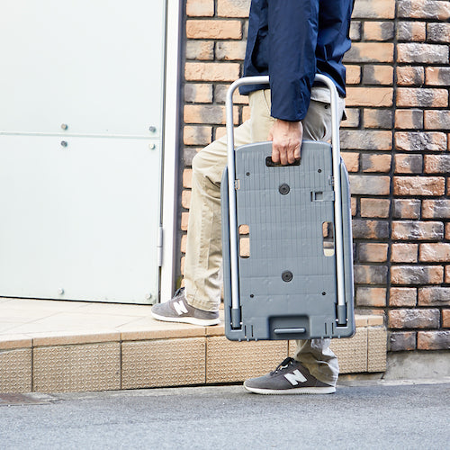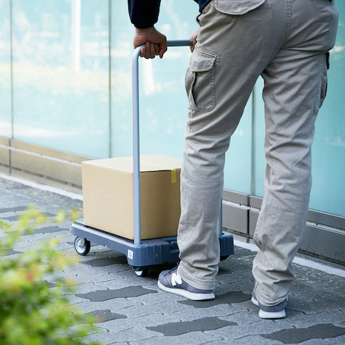 카탈로그 품번:MP-6039N2-DG-TDBF 특징:●φ75부음 캐스터 채용으로 소리가 조용합니다. ●엘라스토머 수지 바퀴의 채용으로 기존의 고무 바퀴에 비해 반발성이 높고 가볍게 움직여, 타이어 흔적을 경감합니다. ●경량 3.9 kg(종래품에 비해 약 9% 경량화)이므로, 작업자의 부담을 경감해, 운반(이동)도 하기 쉽습니다. ●풍부한 칼라 바리에이션으로 다양한 씬이나 니즈에 대응합니다. ● 핸들을 본체 내에 수납할 수 있어 공간 절약에 수납 가능합니다. ●핸들 수납시는 평대차로서 사용 가능합니다. ●원터치 기구 채용으로 핸들의 락・해제가 간단합니다. ● 세워 놓을 수 있습니다. 용도: ●사무소등에서의 자료의 운반에. ● 가정에서 쓰레기 배출 등. 사양:●균등 하중(kg):100●색:아스날 그레이●길이(mm):600●폭(mm):390●높이(mm):125●핸들 높이(mm):790 ●접는 핸들 타입 재질/마무리: ●하대:재생 폴리프로필렌(PP) 재생재 100% ●핸들:스틸 ●핸들 표면 처리:멜라민 베이킹 도장 ●캐스터 쇠장식:스틸 주의:●핸들을 쓰러뜨려의 사용이나 운반 등의 때는 반드시 핸들 락을 실시해 사용해 주십시오. ●전도 방지 기능은 없습니다. ●전도에 주의해 주십시오.
