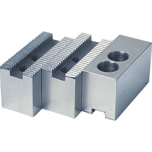 카탈로그 품번:HO7MA-6 특징:●수정 깎기가 용이하고, 게다가 적당한 경도를 가지고 있는 S45C강을 사용하고 있습니다. ● 재설치 후 복원 정밀도 (심 흔들림)의 저하와 마스터 죠의 설치 왜곡이 발생하는 원인 등의 점을 충분히 고려하여 면밀한 가공을 실시하고 있습니다. 사양:●척 외경(인치):6●피치(mm):1.5●길이(mm):70.5●폭(mm):30●높이(mm):30●타입:HO7MA용 ●기계 구조용 탄소강(S45C)