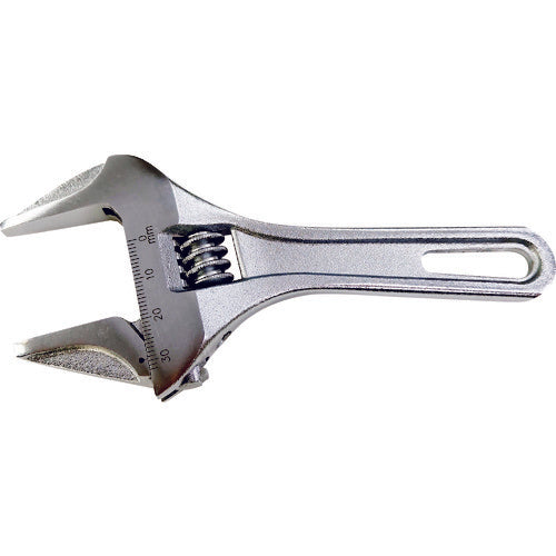 카탈로그 품번:TWMW-28S 특징: ●보통보다 2사이즈상의 볼트・너트 대응할 수 있는 초와이드 타입입니다. ●경량 타입이면서 강도는 JIS H급을 클리어하고 있습니다. ●눈금 첨부입니다. 사양:●전체 길이(mm):118●최대 입 열림(mm):28●선단 두께(mm):4.5●경도:HRC40~50
