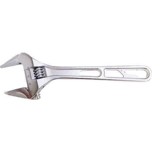 카탈로그 품번:TWMW-43 특징: ●보통보다 2사이즈상의 볼트・너트 대응할 수 있는 초와이드 타입입니다. ●경량 타입이면서 강도는 JIS H급을 클리어하고 있습니다. ●눈금 첨부입니다. 사양:●전체 길이(mm):256●최대 입 열림(mm):43●첨단 두께(mm):6.5●경도:HRC40~50 재질/마무리:●본체:크롬 바나듐강 ●표면 처리:크롬 도금
