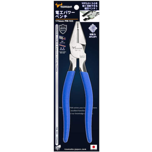 카탈로그 품번:PW-103 특징: ●종래품에 비해, 날원(작용점)으로부터 가시메(지점)까지의 거리를 짧게 한 것으로, 절단시의 하중(악력)이 30% 경감하고 있습니다. ● 절단물을 끼운 상태일 때 잡기 쉽고 힘이 들어가는 그립 형상입니다. ●편심 테코의 효과에 의해, 장시간의 작업에 의한 부담을 경감합니다. 사양:●전장(mm):188 P: 염화 비닐 주의: ● 비절연 공구입니다. 전원을 끄고 사용하십시오. ● 사용 용도 이외에는 사용하지 마십시오. ●그 외 상품 대지 주의 사항 참조.