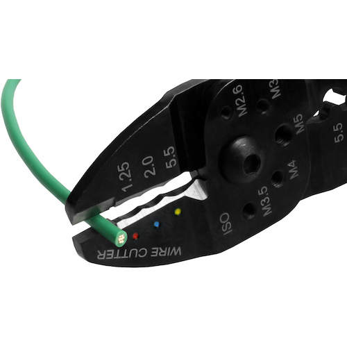 카탈로그 품번:AP-02 특징:●이것 1개로 전기 배선에 필요한 5개의 기능(와이어 커터, 절연 단자 압착, 볼트 나사의 절단, 알몸 압착 단자 압착, 와이어 스트리퍼)를 장비하고 있습니다. ●손에 상냥한 엘라스토머 그립을 채용하고 있습니다. 용도: ●자동차나 전자기기등의 배선의 각종 압착 단자의 압착, 소나사의 절단에. 사양:●전장(mm):235●압착 단자([[MM2]]):1.25/2.0/5.5●압착 단자([[MM2]]) 알몸 단자용:1.25, 2.0, 5.5●압착 단자([[MM2]]) 절연 단자용:1.25, 2.0, 5.5 철선 φ1.2mm/구리선 φ2mm/연선 5.5[[MM2]] 재질/마무리: ●탄소강 ●그립:엘라스토머 수지 주의: ●비절연 공구입니다. 전원을 끄고 사용하십시오. ● 사용 용도 이외에는 사용하지 마십시오. ●그 외 상품 대지 주의 사항 참조.