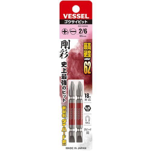 VESSEL 강채 비트 2개 세트 (양두 콤비) +2/-6×65mm GS142665 1 PK