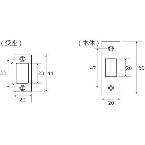 카탈로그 품번:VB-053 특징:●원터치로 간편하게 도어를 개폐할 수 있습니다. 사양:●색:스테인리스색●전장(mm):60●규격:대●사용 나무 나사(mm):2.7×16 재질/마무리:●본체:SUS304●본체/산:놋쇠 ●치수도의 상품 일러스트는 실물의 형상과 다른 경우가 있습니다.