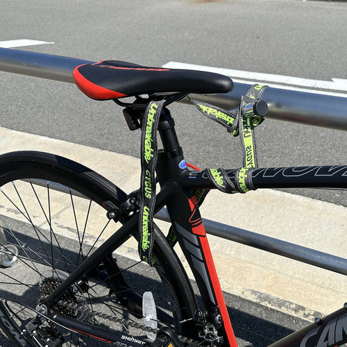 카탈로그 품번:CU-002 특징:●강한・가벼운・유연・녹슬기 어렵다! 용도: ● 도난으로부터 지키고 싶은 것과 고정물에 벨트를 통하거나 감아 합니다. 사양:●색:본체:흑, 문자:녹색●본체 치수(mm) 폭:30●본체 치수(mm) 길이:1000