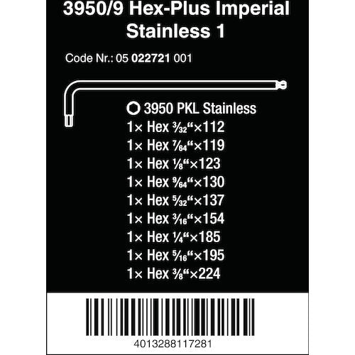 Wera 스테인레스 스틸 헥스 키 세트 인치 022721 1 S