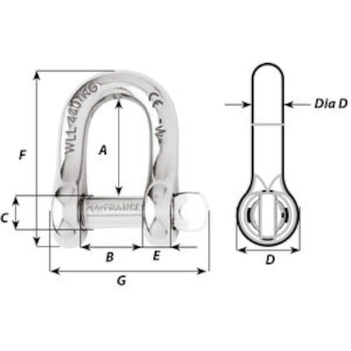 와카드 캡티브 핀 D 샤클 12mm 1406 1 개