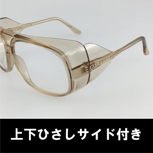 카탈로그 품번:YS-190B 특징:●렌즈가 크게 시야가 퍼집니다. ● 렌즈 교환이 가능합니다. ●별주로 도부 대응도 가능합니다. ●UV 컷 사양의 렌즈입니다. 용도:●비래물, 분진, 약액 비말등 보호용 사양:●렌즈색:클리어●템플색:브라운●폭(mm):140●높이(mm):51●길이(mm):149●렌즈 두께(mm):약 2●방상 가공:○●UV컷 : ●사시 사이드 첨부 ●렌즈 두께:약 2 mm 재질/마무리:● 렌즈:폴리카보네이트 ●프레임:플라스틱