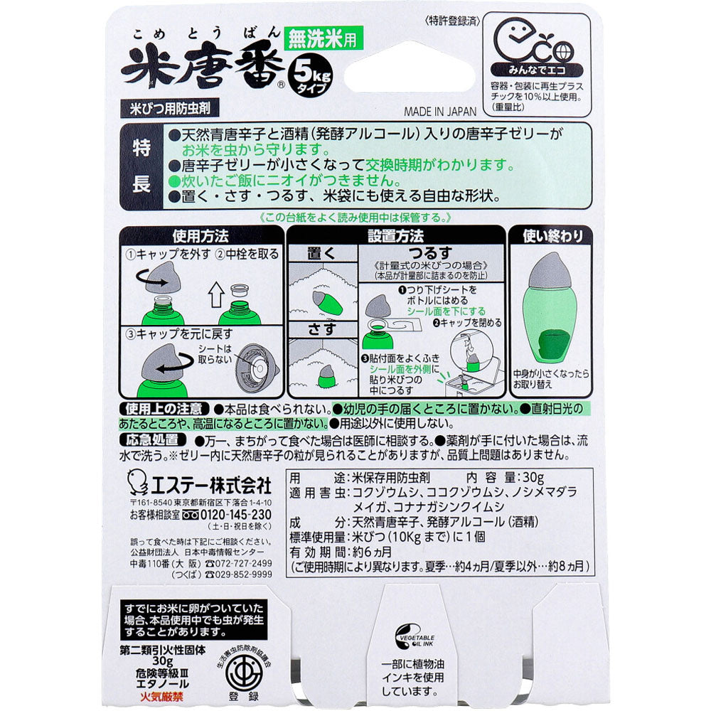 천연 청고추와 주정(발효 알코올)이 들어간 고추 젤리가 쌀을 벌레로부터 보호합니다. 밥 밥에 냄새가 나지 않습니다.