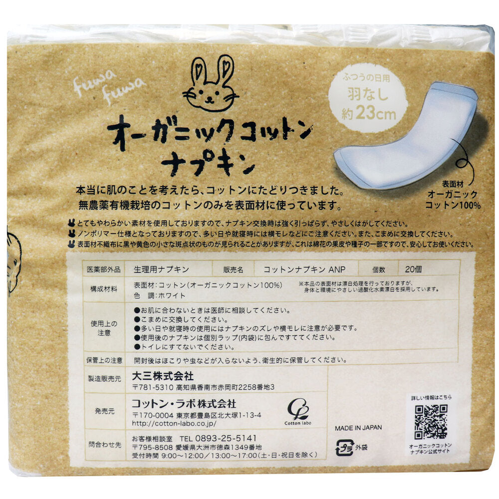 [11월 26일까지 특가]오가닉 코튼 냅킨 비폴리머 날개 없음 보통의 일용 20개입 1개