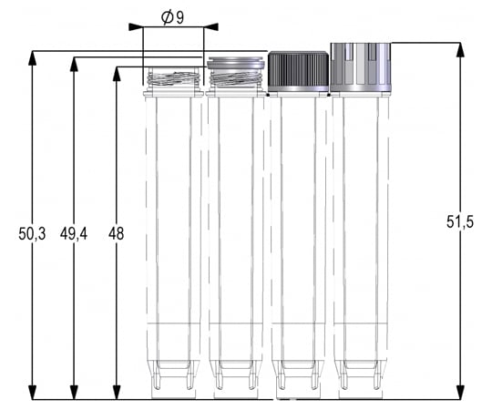 크기: Tube hight/48.0mm, Tube hight with Push cap/49.4mm, Tube hight with Screw cap/51.5mm