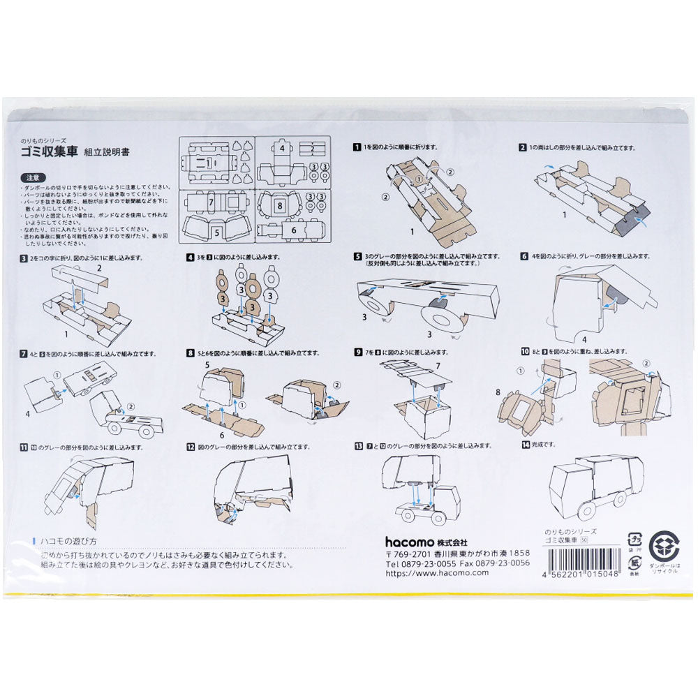 hacomo 노리모노 시리즈 쓰레기 수거차 골판지 공작 키트 1개