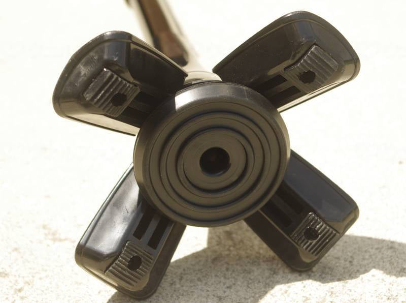 메이커 품번:「JTS-1-L」 TAIS:「01543-000001」 코멘트 다점 지팡이의 안정감과 한 지팡이의 사용의 용이성의 이트코 도리 비스듬한 찌르기에서도 날개 고무의 서포트에 의해 4점 접지를 가능하게 하고 있습니다. 목 흔들림 타입의 4점 지팡이와 달리 중앙 고무 팁은 단단히 고정되어 있기 때문에 하나의 지팡이처럼 단단히 노면을 뚫을 수 있습니다. 4점 지팡이를 잘 사용할 수 없는 분이나, 1개 지팡이에서는 전도의 불안이 있는 분에게. 데코보코도 자갈길이나 모래도 OK 「매달았다」라면, 대각선 찌르기에서도 3~4점 접지를 가능하게 하고 있어, 종래의 4점 지팡이와 비교해 안정감이 다릅니다. 지팡이 끝의 직경은 14cm의 컴팩트 타입 계단과 같은 좁은 공간에서도 안정됩니다. 문을 열고 닫고, 가게 등의 회계, 양손을 사용하는 다양한 장소에서. 의자에서 상승의 보조로. 류마티스로 손가락이 구축 된 사람이라도 잡기 쉬운 그립 좌우 전용 그립 채용 손바닥에 맞고, 제대로 잡혀 피곤하지 않습니다. 지주 최대 하중: 135kgf 지팡이 끝 유닛 최대 하중: 235kgf 1. 손바닥에 맞는 압력을 분산하는 그립 구조, 가지고 쉽고 피곤하지 않은 설계. 2. 1개 지팡이 구조이므로, 다른 4점 지팡이와 달리 옥외에서의 이용에 적성이 있습니다. 3. 중앙 고무 팁은 완전히 고정되고 안정되어 있습니다. 가동식 다점 지팡이에는 드문 구조입니다. 4. 방사형으로 나와 있는 가동식의 4개의 다리부가 밸런스를 취하는 구조로 되어 있어, 간단하게 지팡이가 자립합니다. 재질·원재료 <재질> 손잡이 부분: ABS 수지 프레임: 알루미늄 합금 베이스 부분: ABS 수지, 스테인레스 스틸 규격 상세 신축 사이즈:650mm~880mm 샤프트 직경: 외경 22mm・내경 19mm・베이스 직경 140mm 무게: 528g 부속품:육각 렌치 1개