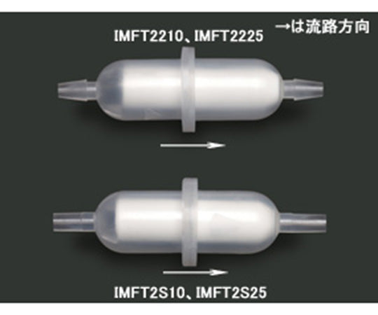 화살표 방향으로 흐르는 액체를 여과하는 다공성 필터를 내장한 연질 튜브용 커넥터입니다.