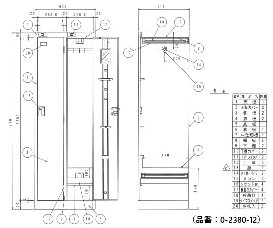 점등 램프가 붙어 있으므로 외부에서 확인할 수 있습니다. 사이즈(mm):608×515×1790