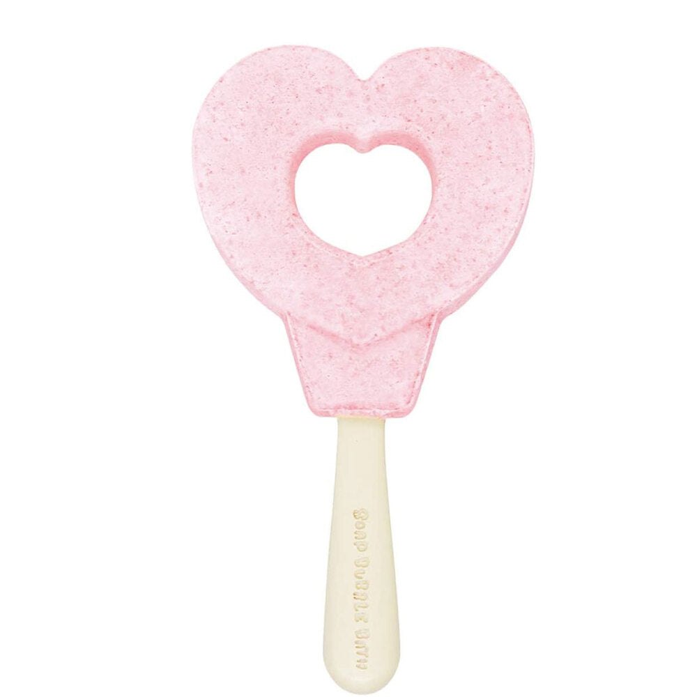 シャボン玉&泡風呂が両方楽しめます♪ お風呂で知育。親子で楽しくコミュニケーション! シャボン玉が作れる入浴剤。 シャボン玉を楽しんだあちは、お湯に浮かべてシャワーを当てると泡風呂になるよ♪ ●シャボン玉の形やおおきさは息を吹く強さで決まるよ。 おおきく息をすってそ~っとやさしく吹いてみよう。おおきくてキレイなシャボン玉を作れるかな? ●フローラルなかおり。 【浴用化粧料】 【成分】 炭酸Na、酒石鹸K、ラウレス硫酸Na、ラウリル硫酸Na、水、グリセリン、コカミドプロピルベタイン、安息香酸デナトニウム、香料、(+/-)赤102、黄4 【使用方法】 本品(1個)に対して、お湯(約200L)が目安です。入浴後は必ず身体を十分に洗い流してください。 ★遊び方 (1)お湯にハート部分をつけてシャボン玉をつくって楽しもう! お湯につけるのはあなのところまで。 ※ハートの根元と棒をお湯につけると、とれやすくなるので気をつけてください。 (2)シャボン玉を楽しんだ後は、お湯にバスシャボンを浮かべるようにしてシャワーでお湯をかけると・・・泡風呂になるよ。いきおいよく。 ※入浴後は必ず身体を十分に洗い流してください。 ※棒は溶けません。泡風呂にした際はすぐに取り除いてください。 【注意】 ・本品を安全にお使い頂く為にご使用前に必ずお読みください。注意書きは捨てずにすぐ読める場所に保管してください。 ・この商品は入浴料です。たべられません。 ・飲食不可。誤飲等注意。 ・万一飲み込んだ場合や使用中・使用後に異常があらわれた時は、本品を持参しすぐ診察を受ける。 ・棒は、絶対に口に入れない。 ・目に入った場合は真水で直ちに洗い流し、医師の診察を受ける。 ・使用後は直ちに浴槽・風呂釜等をよく洗い流す。 ・変色・変質の恐れがあるので大理石、木製のお風呂等では使用不可。 ・24時間保温等、循環式の風呂釜では使用不可。ろ過機(フィルター)が目詰まりする等、浴槽や風呂釜を傷める可能性有り。 ・湯を沸かすタイプのお風呂では本品を使用後、二度焚きすると風呂釜内部に汚れが付着する恐れ有り。 ・残り湯は洗濯に使用不可。 ・他の入浴剤と併用不可。用法・用量を超えた使用不可。 ・入浴以外の用途には使用不可。 ・お子様やペットの手の届かない所で保管。 ・変色・変質・色抜けの恐れがある為、高温多湿や直射日光を避けて保管。 ・開封後はすぐにご使用ください。 ・本品は誤食防止の為、使用の際顔を近づけたり、口に入った時等、苦味を感じる仕様となっております。 ・シャボン玉を楽しむ際は、ハートの根本と棒をお湯につけると、とれやすくなるので注意。 ・保護者の方へ:絶対に口に入れないようにご注意ください。棒は入浴剤が溶けきった後すぐに破棄してください。
