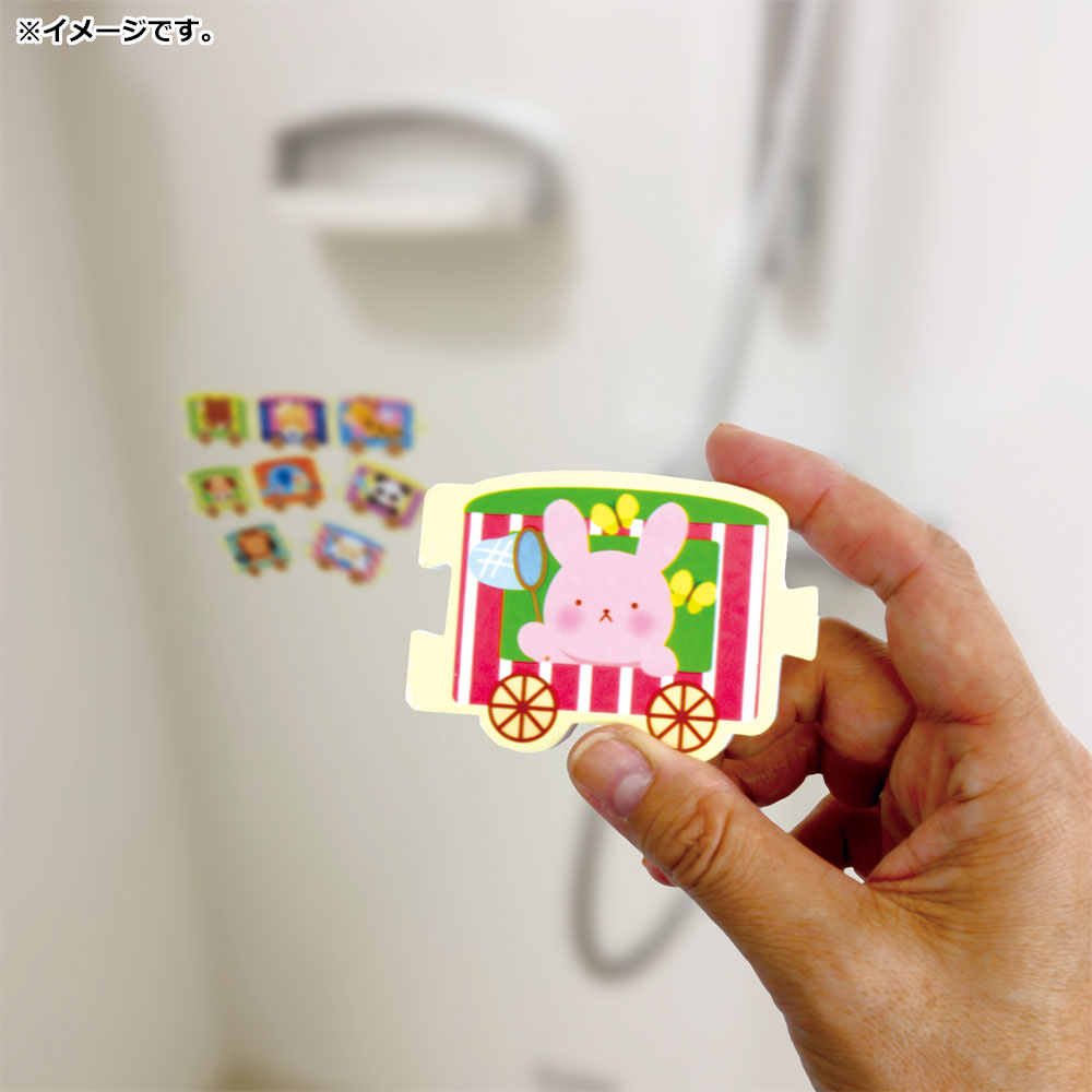みんな一緒だとワクワクするね! お風呂の壁に貼ったり、つなげて遊べる入浴剤です。 ●日本製入浴剤付き。 ●湯色:イエロー/レモンの香り湯。 ●動物をモチーフにした列車は全9種うち、3種入り(※種類は選べません)。 ・うさぎ ・ねこ ・いぬ ・ぞう ・らいおん ・きりん ・くま ・ひつじ ・ぱんだ 【浴用化粧料】 販売名:PFバス イエロー 【セット内容】 ・粉末浴用化粧品25g ・つなげるパーツ3個 ※上記以外は付属しません。 【対象年齢】 7才以上 ※対象年齢未満のお子様には絶対に与えないでください。 【材質】 マスコット類:EVA 【全成分】 入浴剤:硫酸Na、硫酸Mg、塩化K、グリシン、シリカ、クエン酸、リンゴ酸、レモンエキス、水、エタノール、DPG、香料、黄4、黄5 【サイズ】 マスコット:約高さ5cm×幅7cm×奥行1cm 【使用方法】 浴槽の湯(約200リットル)に対し、25gを溶かして入浴してください。 【あそびかた】 ・パーツはお湯(水)にぬらして、お風呂場の壁に貼って、つなげて遊んでね! 【注意】 ★警告(保護者の方へ 必ずお読みください。) ・小部品があります。誤飲、窒息などの危険がありますので、3才未満のお子様には絶対与えないでください。 ★注意 ・本品を使用する際は必ず保護者のもとで遊んでください。 ・小さなお子様やペットの手の届かない場所で使用・保管してください。 ・使用目的以外の事には使用しないでください。 ・絶対に口に入れないでください。 ・高温・多湿を避け冷暗所に保管してください。 ・開封後はすぐにご使用ください。 ・材質の特性上、臭いがする場合があります。気になる場合は風通しの良い場所で陰干しなどをしてご使用ください。 ・壁の材質や凹凸の具合によっては、シートが付かない場合があります。 ・袋は梱包材です。開封後はすぐに捨ててください。 ・同じ場所に長時間貼ったままにしておくとカビの発生・剥がれなくなることがありますのでご注意ください。 ★入浴剤に関する保管上の注意 ・乳幼児(幼小児)の手のとどかない所に保管してください。 ・湿気を帯びると色調や香りが低下することがありますので保管に注意してください。 ・開封後はすぐに使用してください。