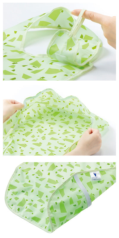 ・裏側をめくるとポケット付きエプロンになります。裏側に戻してお洗濯すると端に溜まった食べカスも綺麗に清潔に。