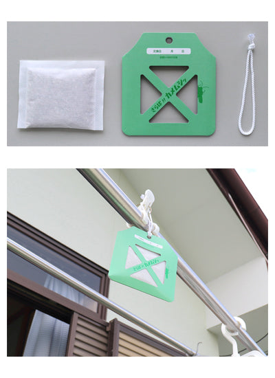 ・使い方はとっても簡単!!不織布をケースに入れ、紐を取り付け物干し竿など洗濯物の近くに設置するだけ。