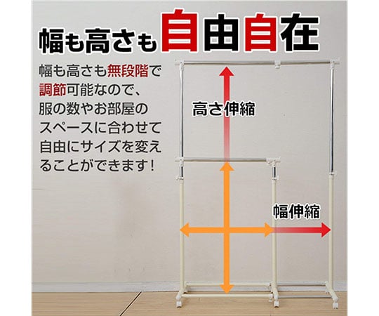 タテにもヨコにも伸び縮み、サイズ調整可能なハンガーラック。