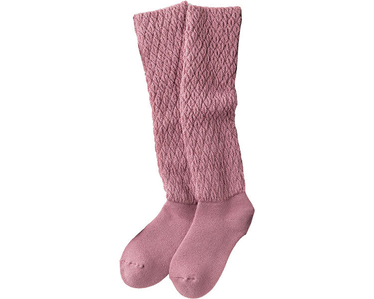・足首から太ももには凹凸の二重編みが施されふわふわ柔らか、さらに暖かい空気の層を作り逃しません。