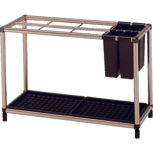 カタログ品番:US-Z-35P 特長:●折りたたみ傘も収納できます。 仕様:●間口(mm):750●奥行(mm):300●高さ(mm):495●傘本数(本):32(長傘)+4(折りたたみ) 材質/仕上:●フレーム:ステンレスクラッドパイプ●水受皿:再生材100%ABS樹脂●折りたたみ傘用ポケット:再生ABS樹脂