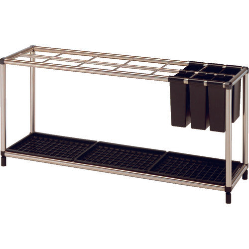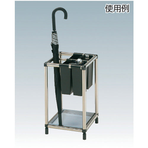 カタログ品番:US-Z-36P 特長:●折りたたみ傘も収納できます。 仕様:●間口(mm):1100●奥行(mm):300●高さ(mm):495●傘本数(本):54(長傘)+6(折りたたみ) 材質/仕上:●フレーム:ステンレスクラッドパイプ●水受皿:再生材100%ABS樹脂●折りたたみ傘用ポケット:再生ABS樹脂