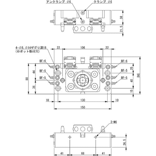 カタログ品番:OX-LBF 特長:●ロボットハンドを短時間で簡単に交換できます。●独自の離脱機構搭載です。(特許第4126074号)●フェールセーフ機構内蔵です。●エアーチェッキ弁内蔵です。(ロボット側)●フレームを超ジュラルミン製、着脱部が鉄製のハイブリット構造です。 仕様:●タイプ:ロボット側●幅(mm):150●奥行(mm):95●高さ(mm):59.5●可搬重量(kg):〜35●引込力/押出力(N):4000/750●コネクタ形成:D−SUBコネクター&プローブコネクタ●位置再現精度:±0.02mm●使用空気圧:0.5〜0.7MPa●配管接続:6回路/M5●電気接点:9芯×2 (2A DC24V Max)●連結時の厚み:60mm 材質/仕上:●超ジュラルミン+鉄製