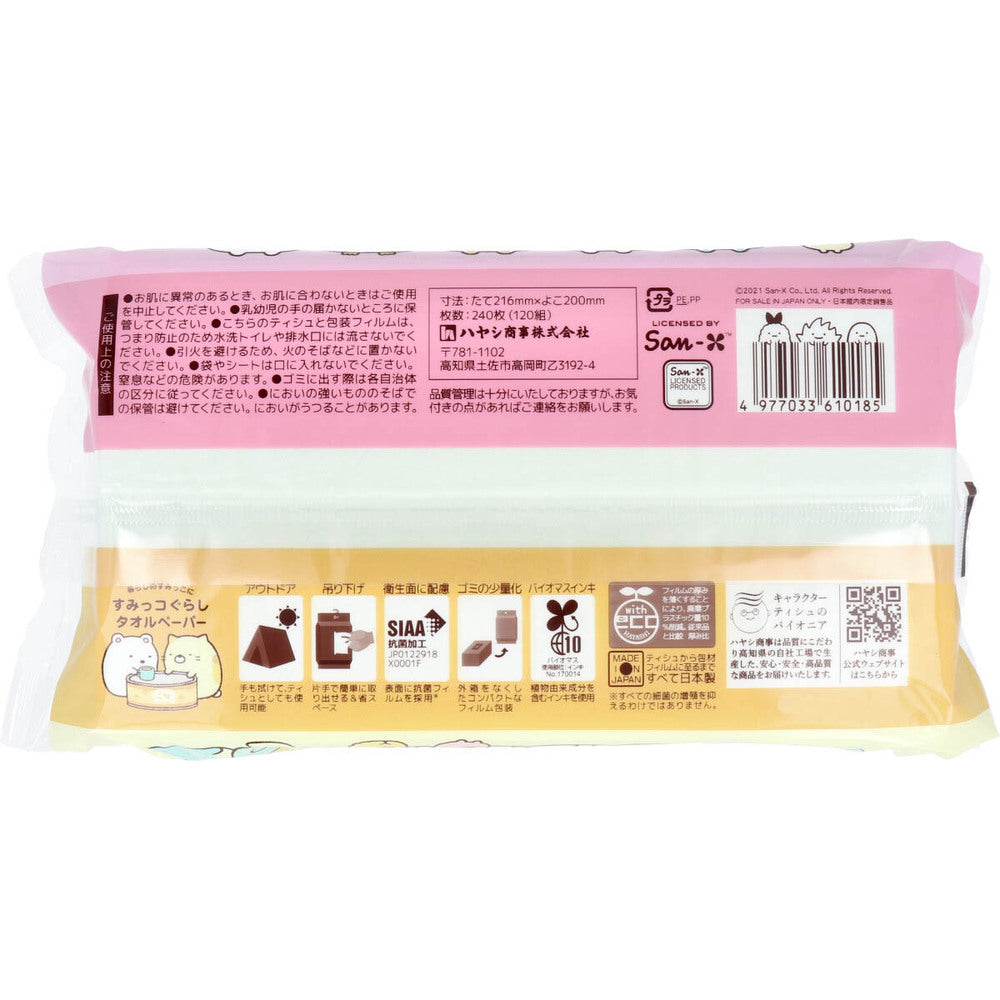 【アウトレット】すみっコぐらし ハンドリッチ タオルペーパー 袋入 240枚(120組) 1 個
