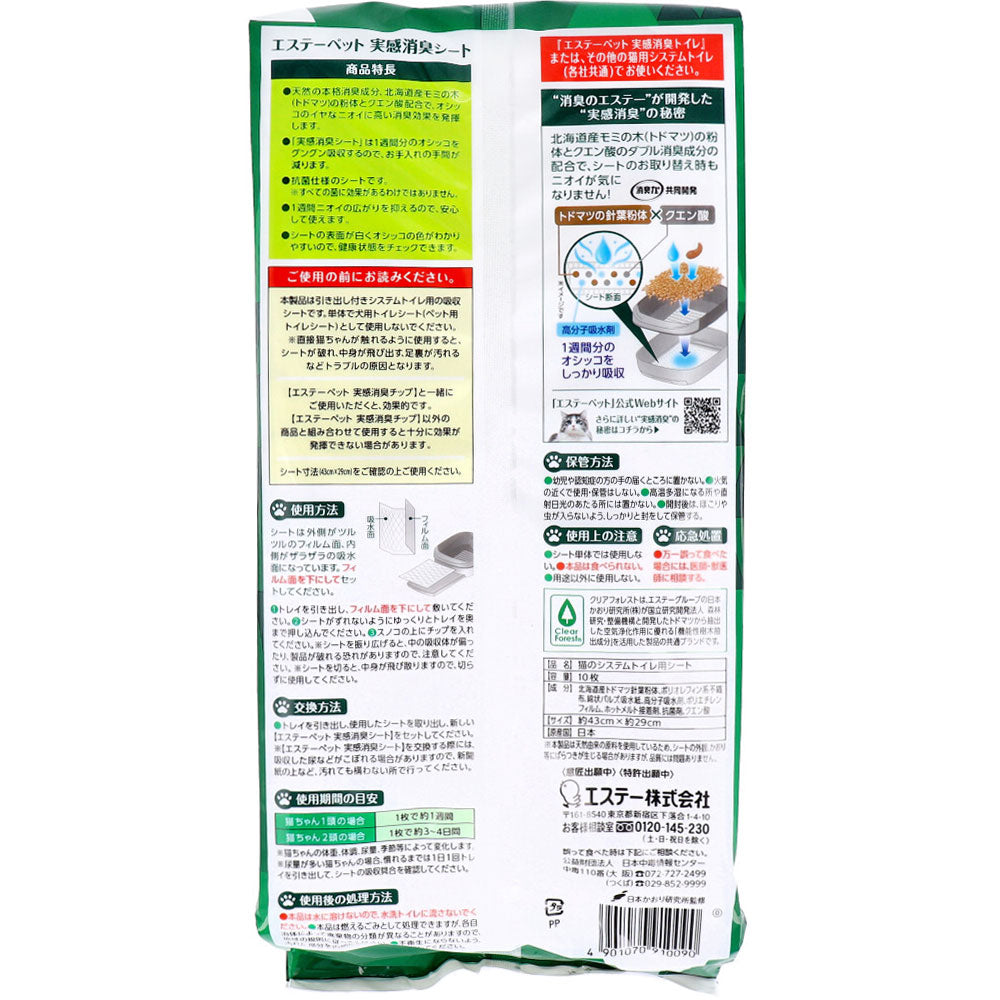 【アウトレット】エステーペット 実感消臭シート 猫用システムトイレ 10枚入 1 個