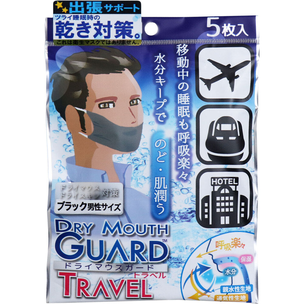 【アウトレット】ドライマウスガード マスク トラベル 男性サイズ ブラック 5枚入 1 個
