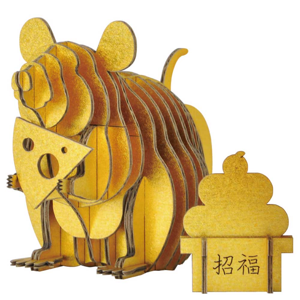 【アウトレット】hacomo GRID ねずみ ゴールド ダンボール工作キット 1 個