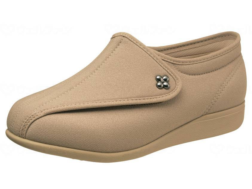 メーカー品番:「KS23142-」 サイズ・重量 重量(片方サイズ23.0cm)約195g コメント 女性用 ゆったりワイド足囲5Eモデル POINT1.体重移動をコントロールして、歩行をサポート POINT2.水に浮くほど軽い POINT3.つまずきにくく安心 POINT4.脱ぎ履きが簡単 POINT.5安心・安全の国内生産 ○補助バンド付き ○丸洗いOK 抗菌防臭 ○ヒール外寸:約2.5cm ○足囲:5E 材質・原材料 ○素材:合成繊維・合成皮革 ○底材:ゴム 規格詳細 22.5cm
