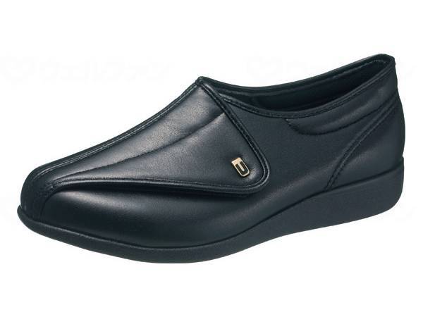 〇面ファスナーが大きくガバッと開き、脱ぎやすく履きやすい、男性向けシューズ。
