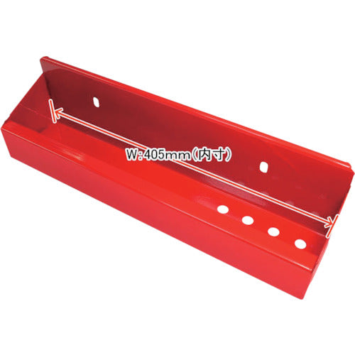 カタログ品番:2003000002249 特長:●ドライバーホルダー付きのスプレー缶ホルダーです。●引っ掛けて装着するタイプなので、ロールキャビネットの上面に掛けて使用します。●直径φ68mmまでの缶を収納でき、底部にはドライバーを8本差し込めるよう、穴が開いています。●高さのあるロールキャビネットに装着すれば、ロングドライバーも収納することが可能です。 仕様:●本体サイズ:W410×D100×H50〜105mm(ツメ部含む)●ホルダー内寸:W405×D70×H45〜100mm●ドライバー差込穴径:φ11.5mm×8●固定用ビスサイズ:L29×φ4.8mm セット内容/付属品:●固定用ビス×2