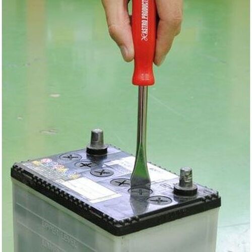 カタログ品番:2002000007506 特長:●一部車種のオートバイのオイルフィラーキャップにも使用できます。 用途:●バッテリーの給水キャップ回しに最適 仕様:●軸長(mm):90●全長(mm):190●グリップ色:赤●先端幅(mm):18●厚さ(mm):1.5●先端幅が広く力が分散されるため、樹脂キャップなどに傷を付けにくい 注意:●※貫通タイプではありません。ハンマーなどで、叩かないでください。●※電気の流れている箇所に使用しないでください。●※異なるサイズには使用しないでください。●※過度なトルクを掛けないでください。