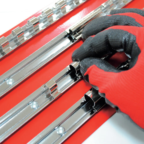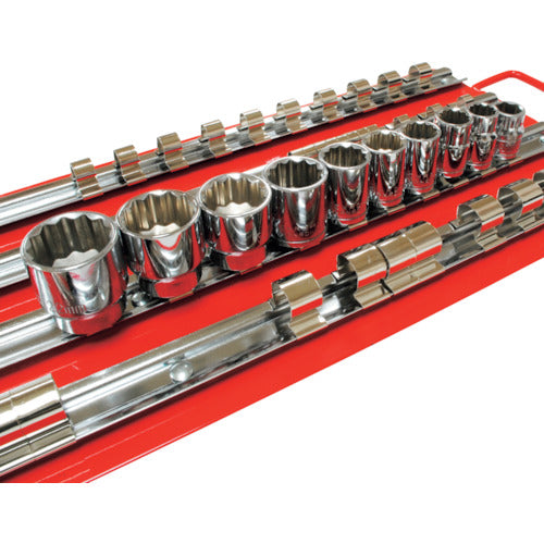 カタログ品番:2002000002440 特長:●差込角1/4DR(6.3mm)、3/8DR(9.5mm)、1/2DR(12.7mm)の3種類に対応し、ホルダーを入れ替えることが可能です。 用途:●ソケットを収納し、保管するときに便利なホルダー 仕様:●本体サイズL(mm):440●本体サイズW(mm):150●クリップ数:1/4DR(6.3mm)×20、3/8DR(9.5mm)×30、1/2DR(12.7mm)×30●本体機能:取っ手付き●ソケットを収納し、保管するときに便利なホルダー●持ち運びに便利なハンドル付き 注意:●※作業上障害となる場所、衣装などが引っ掛かる位置には、置かないでください。●※差込角のサイズに合ったソケットに、使用してください。●※持ち運びは、必ず本製品を持ってください。ソケット類を持つと、落下の恐れがあります。