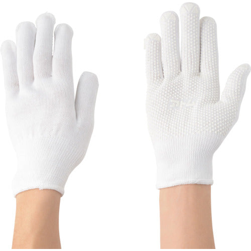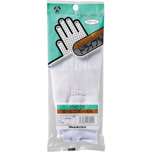 カタログ品番:142-DX 特長:●13Gの編み手袋にポリ塩化ビニルのすべり止め加工を施した手袋です。●綿100%で風合いが良いです。 用途:●運輸●流通作業●検品●建設●農作業等 仕様:●色:白●サイズ:フリー●全長(cm):23.5±1●手のひら周り(cm):19.4±0.6●中指長さ(cm):7.8±0.5●梱包数:200双(10双×20)●13ゲージ 材質/仕上:●手袋:綿100%●すべり止め:ポリ塩化ビニル 注意:●炎・火花・高温の蒸気等、熱いものに直接触れないでください。やけどの恐れがあります。●電気作業には使用しないでください。感電の恐れがあります。●鋭利な刃物、ガラスや金属等のバリを強く握らないでください。切創事故を起こす恐れがあります。●回転体作業には使用しないでください。手袋が巻き込まれてケガをする恐れがあります。●体質によってはかゆみ・かぶれ・発疹等を起こす場合があります。異常を感じられたら使用を中止してください。