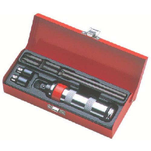 カタログ品番:1902 特長:●ハンマーでハンドル後端を叩くと先端が回ります。●ハンマー打撃から手を守るOリング付です。●手の滑りを防止するローレット加工です。●本体差込角9.5mm(3/8”)でソケットレンチも取り付け可能です。●付属のビットアタッチメントで6.35六角と8六角ビットが使用可能です。 用途:●強く締ったネジ、固着したネジ、錆びたネジ回しに。●ネジの強い締め付けに。 仕様:●差込角(mm):9.5●セット内容:インパクトドライバー本体、対辺6.35/8mm六角軸対応ビットホルダー、[[+]]2×125、[[−]]6×125、[[+]]2×36、[[+]]3×36、[[−]]8×36、[[−]]10×36●対辺6.35mm・8mm六角軸ビット対応●ビット6本付●回転方向の左右切替可 材質/仕上:●本体:合金鋼、炭素鋼、ゴム●ビット:クロム・モリブデン・バナジウム鋼 セット内容/付属品:●対辺6.35mmビットホルダー●対辺8mmビットホルダー●対辺6.35mm六角軸(AK-22P)+2×125、−6×125●対辺8mm六角軸(AK-21P)+2×36、+3×36、−8×36、−10×36