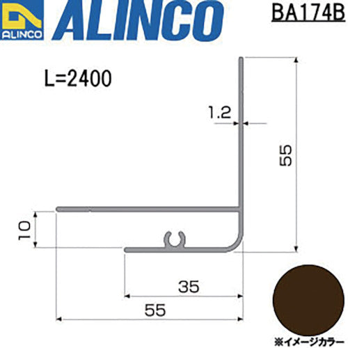 アルインコ 波板用コーナ−見切(片) 2.4M ブロンズ BA174B 1 本